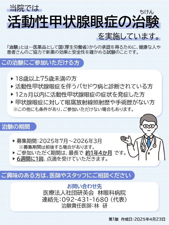 私たち林眼科病院では、“治験”を積極的に行っています。